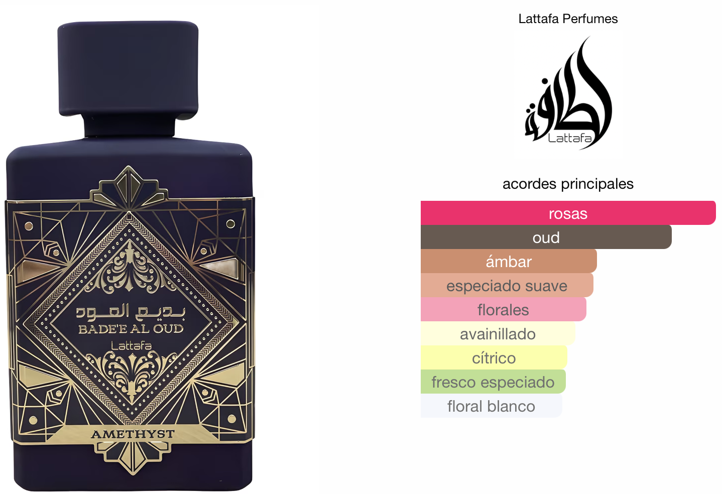 Badee Al Oud Amethyst de Lattafa Perfumes es una fragancia de la familia olfativa Oriental Vainilla para Hombres y Mujeres.